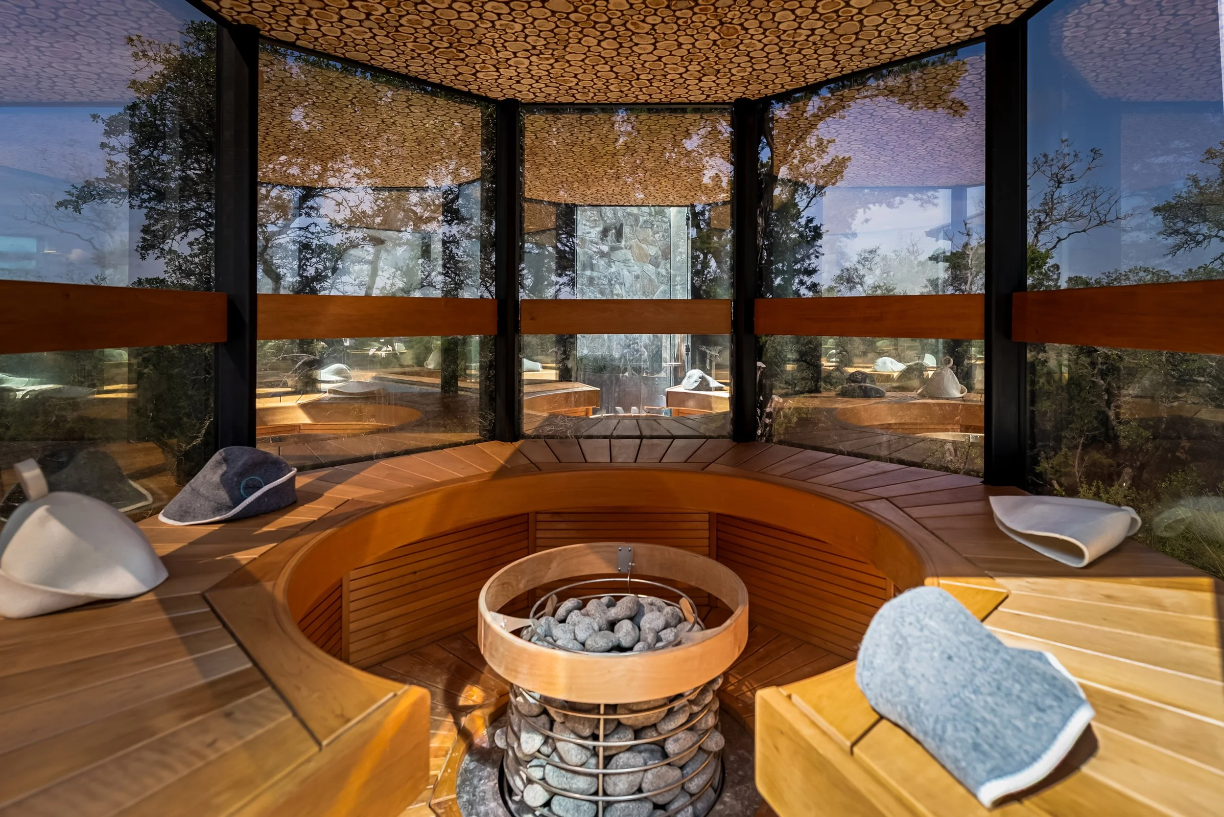 🔥 Pool · Hot Tub · Glass Sauna · Cold Plunge